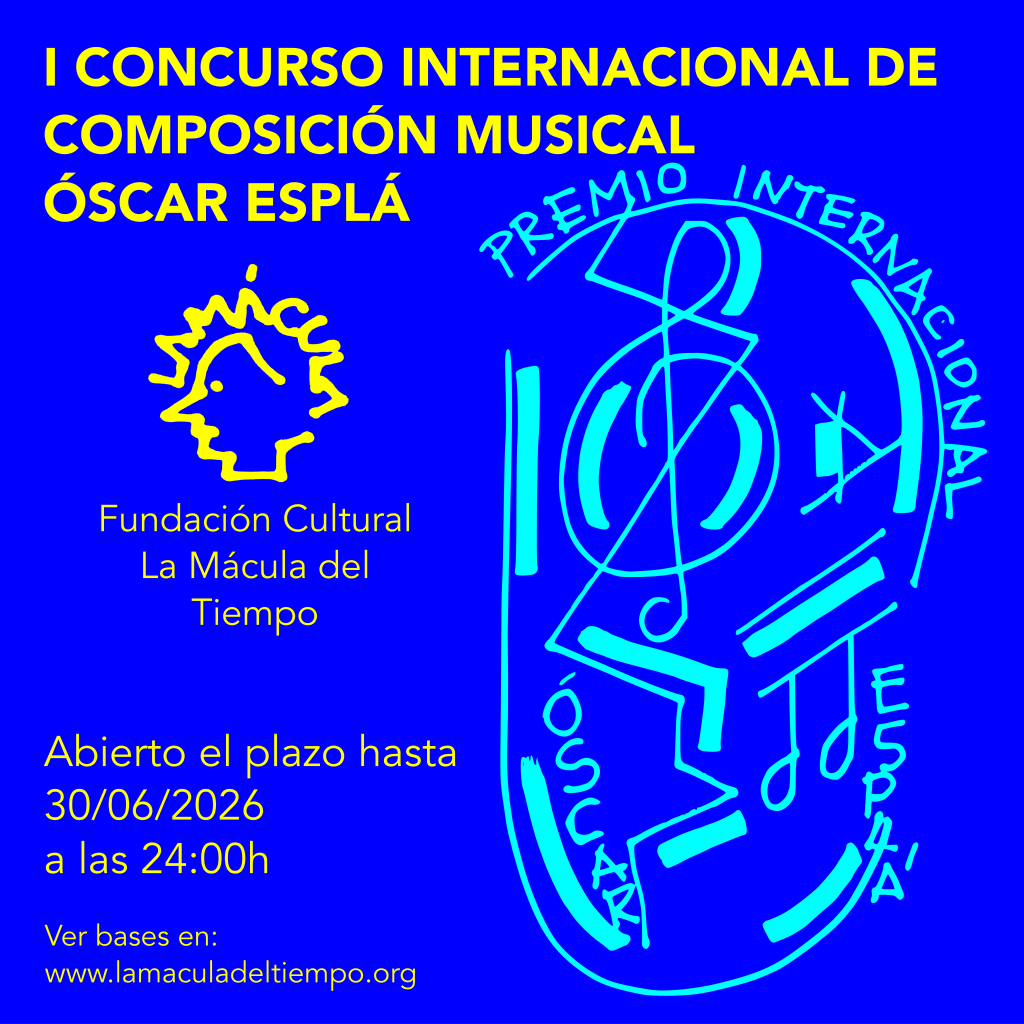 La Fundación Cultural La Mácula del Tiempo y el Conservatorio Superior de Música Óscar Esplá de Alicante, se unen para convocar el I Concurso Internacional de Composición Musical Óscar Esplá. Para esta primera edición contamos con el apoyo de importantes instituciones como Fundación ASISA, Diputación Provincial de Alicante, El Patronato de Turismo de Turismo y Playas de Alicante, Casa Mediterráneo, Orquesta Filarmonía Ciudad de Orihuela, instituciones culturales como la Fundación Don Biblo, que suman su compromiso con la creación musical actual para la imprescindible puesta en valor de los referentes culturales que integran nuestro contexto cultural.